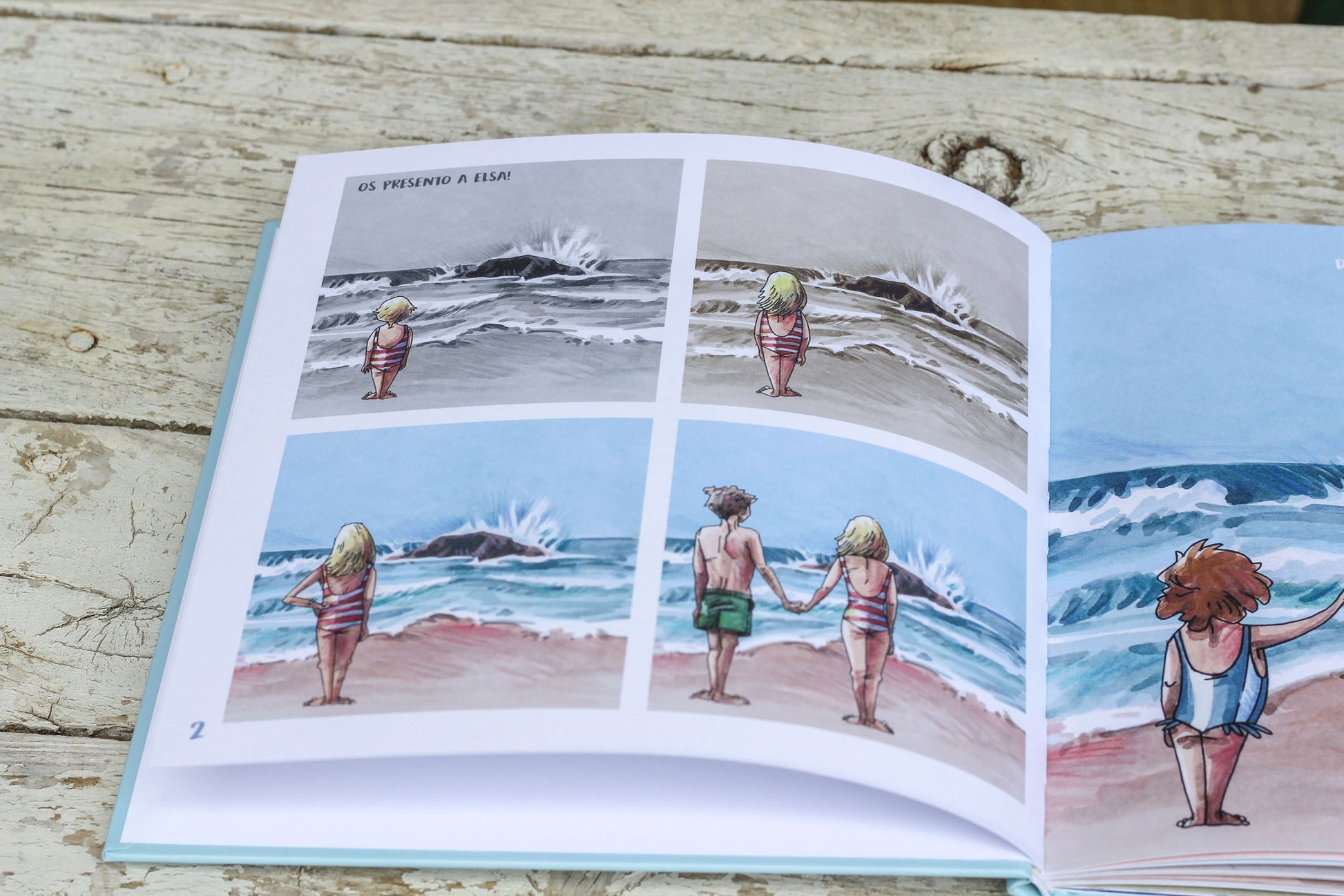 A través de esos personajes, la ilustradora arma una historia que se pasea por escenarios de Valdoviño a los que no pone nombre, pero que sin duda resultarán reconocibles. Entre las páginas de Allá en los mares asoman rincones tan familiares para nosotros como las playas de Campelo, Frouxeira, Pantín y Villarrube, o los acantilados de San Andrés de Teixido.